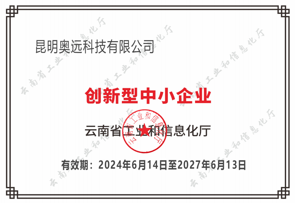 昆明AG凯发K8国际科技有限公司荣获“创新型中小企业”称号,是公司全体员工共同努力的结果。我们深信,未来的昆明AG凯发K8国际科技有限公司将继续以创新为驱动,锐意进取,为有助于行业进步和社会开展贡献更多智慧和力量。